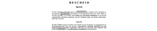 TeLo GmbH ist das erste Ingenieurbüro in Österreich mit der Gewerbeberechtigung auf dem Fachgebiet "Safety and Systems Engineering.