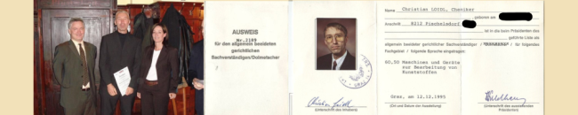 Christian Loidl absolvierte die Ausbildung und Prüfung zum allgemein beeideten und gerichtlich zertifizierten Sachverständigen (60.50 Maschinen, Anlagen zur Kunststoffbearbeitung).